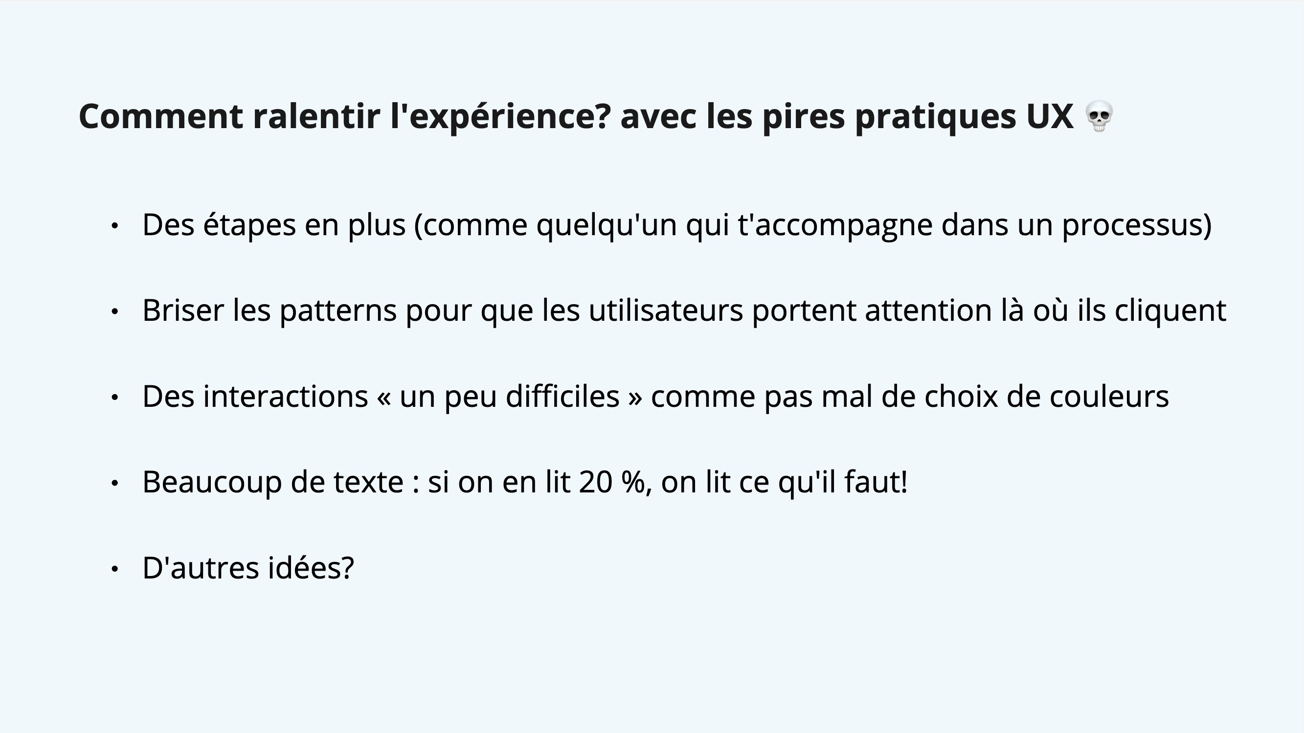 J’anime régulièrement des présentations internes pour démystifier certaines pratiques UX (surtout celles qui sont contre-intuitives!).